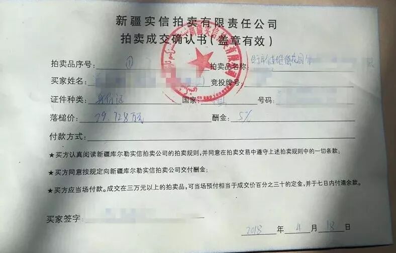 拍卖成交确认书,